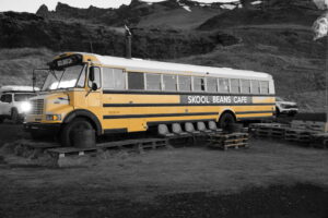Skool Beans: בית קפה בתוך אוטובוס תלמידים צהוב! חוויה מתוקה עם קפה שנקלה במקום.